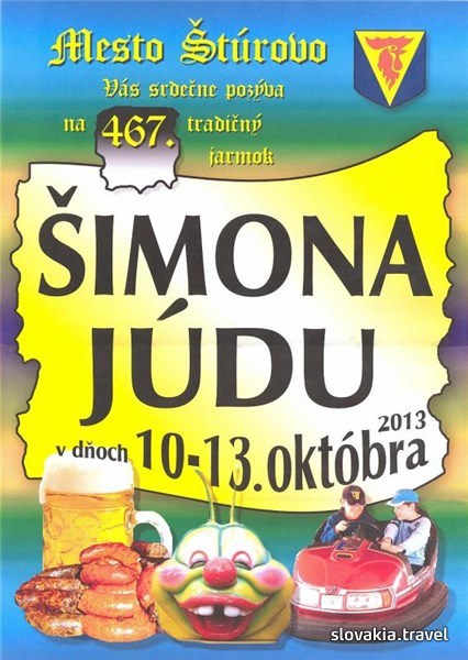 Okolo sviatku Šimona a Júdu sa už tradične koná v Štúrove jarmok určený všetkým milovníkom dobrého jedla a zábavy. Tento rok sa uskutoční v dňoch 10.-13. októbra 2013 .